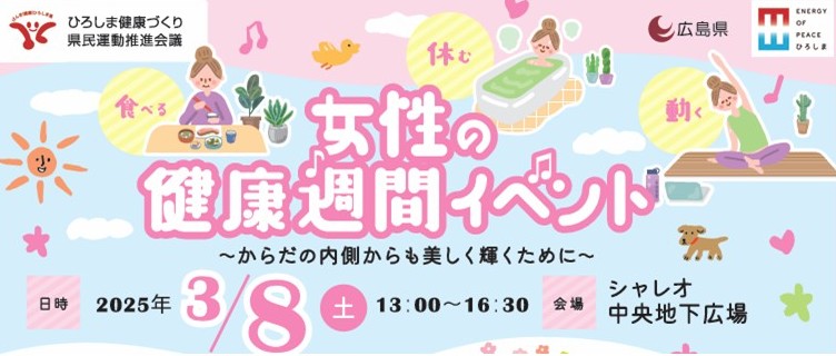 女性の健康週間(3月1日~8日)にあわせて、広島県の女性の健康づくりを応援するイベント を開催します!