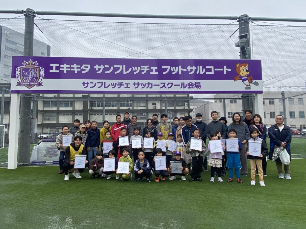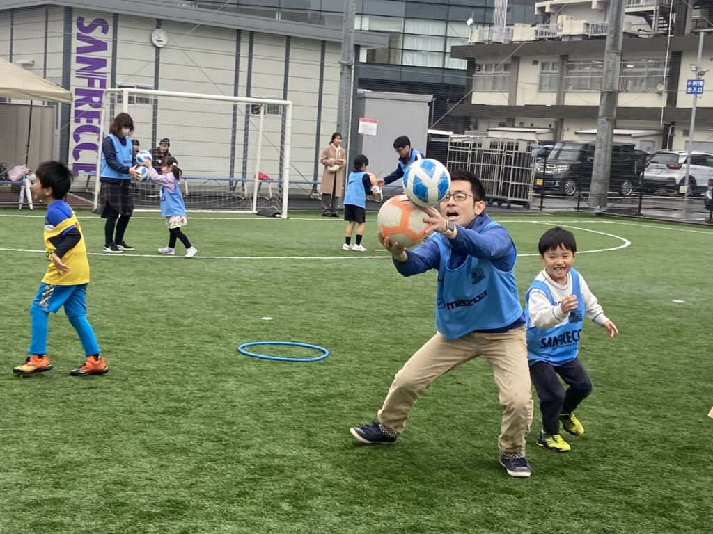 活動報告 2024.03.29 3/24開催 ファミリーふれあいスポーツ教室開催について 2024年3月24日(日)ekieエキキタパーク(エキキタサンフレッチェフットサルコート)において、サンフレッチェ広島さん共催『ファミリーふれあいスポーツ教室』を開催しました。