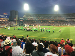 活動報告 2016.06.10 「がん検診へ行こうよ」inマツダスタジアム2016 5月26日(木)MAZDA Zoom-Zoomスタジアム広島「がん検診へ行こうよ」inマツダスタジアム2016 スタジアム入口で市町の「ゆるキャラ」も参加し、がん検診啓発チラシ等を配布しました。5回裏終了後グランド内にて、がん検診啓発パフォーマンスを行いました。