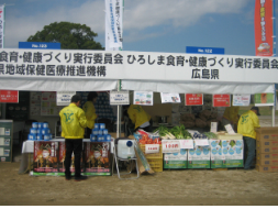 活動報告 2014.10.27 ひろしまフードフェスティバル2014 平成26年10月25日(土),10月26日(日)今年もひろしまフードフェスティバルに出展しました。 【会場】地産地消広場(中央公園)【出展内容】○ひろしま健康大使の広島県安全・安心食育文化協会さんによる新鮮野菜の販売○がん検診受診率向上のための啓発活動資材を配布 たくさんのご来場,ありがとうございました。