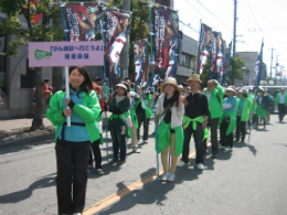 活動報告 2014.05.20 第47回 福山ばら祭 2014 がん検診啓発イベントに参加しました。 【日時】平成26年5月18日(日)【会場】緑町公園周辺(福山市) デーモン閣下とともにローズパレードに参加し、がん検診の受診をアピールしました。