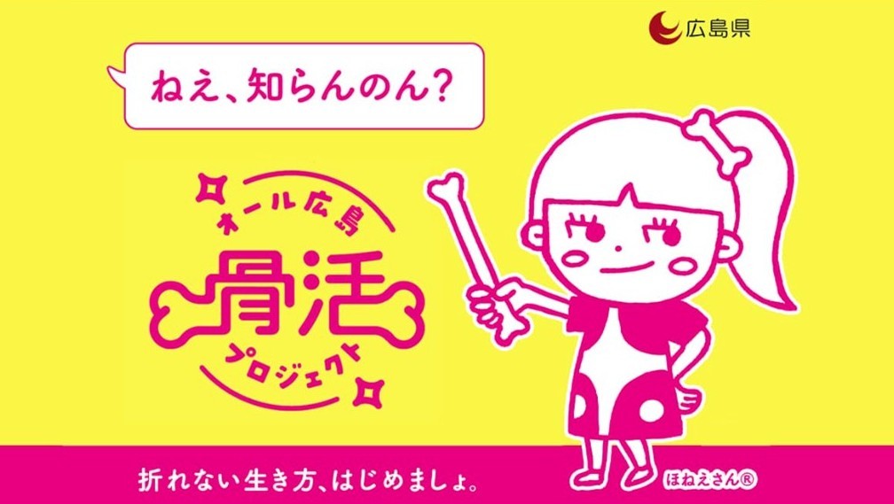 お知らせ 2026.04.06 みんなで実践!広島県の骨粗鬆症予防「オール広島・骨活プロジェクト」 広島県では、骨粗鬆症による骨折を防ぐため、運動・食事・検診を通じて骨の健康を守る「骨活」を推進しています。県内では骨密度測定の機会提供や啓発イベント、世界骨粗鬆症デーに合わせたライトアップなど、多様な取り組みが進められています。若い世代から高齢の方まで、自分の“骨貯金”を知り、予防につなげることが大切です。詳しい情報は特設ページで紹介されていますので、ぜひご覧ください。 詳しくはこちら ↓ 徹底解剖ひろしまラボ