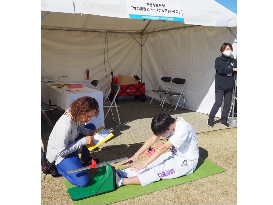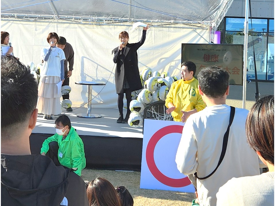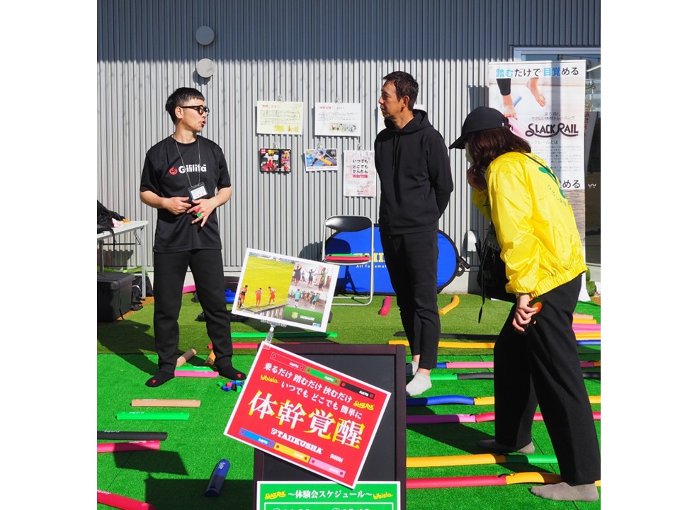 屋外では、健康運動指導士による体力測定とアドバイス、薬剤師による健康相談、輪投げを通じた朝食学習、睡眠や休息についてのトークショー、ウォーキング教室、体育社様による体幹覚醒体験など、子どもから大人まで楽しめるブースが並びました。