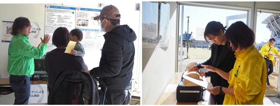ひろしま健康づくり県民運動推進会議の取り組み紹介や、がん検診の啓発を行い、日ごろからの健康づくりの大切さを発信しました。